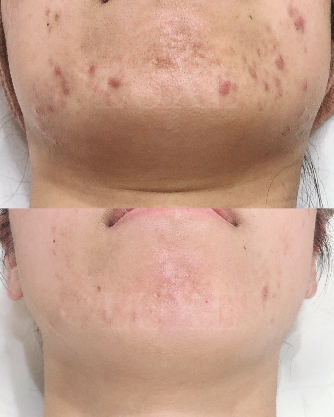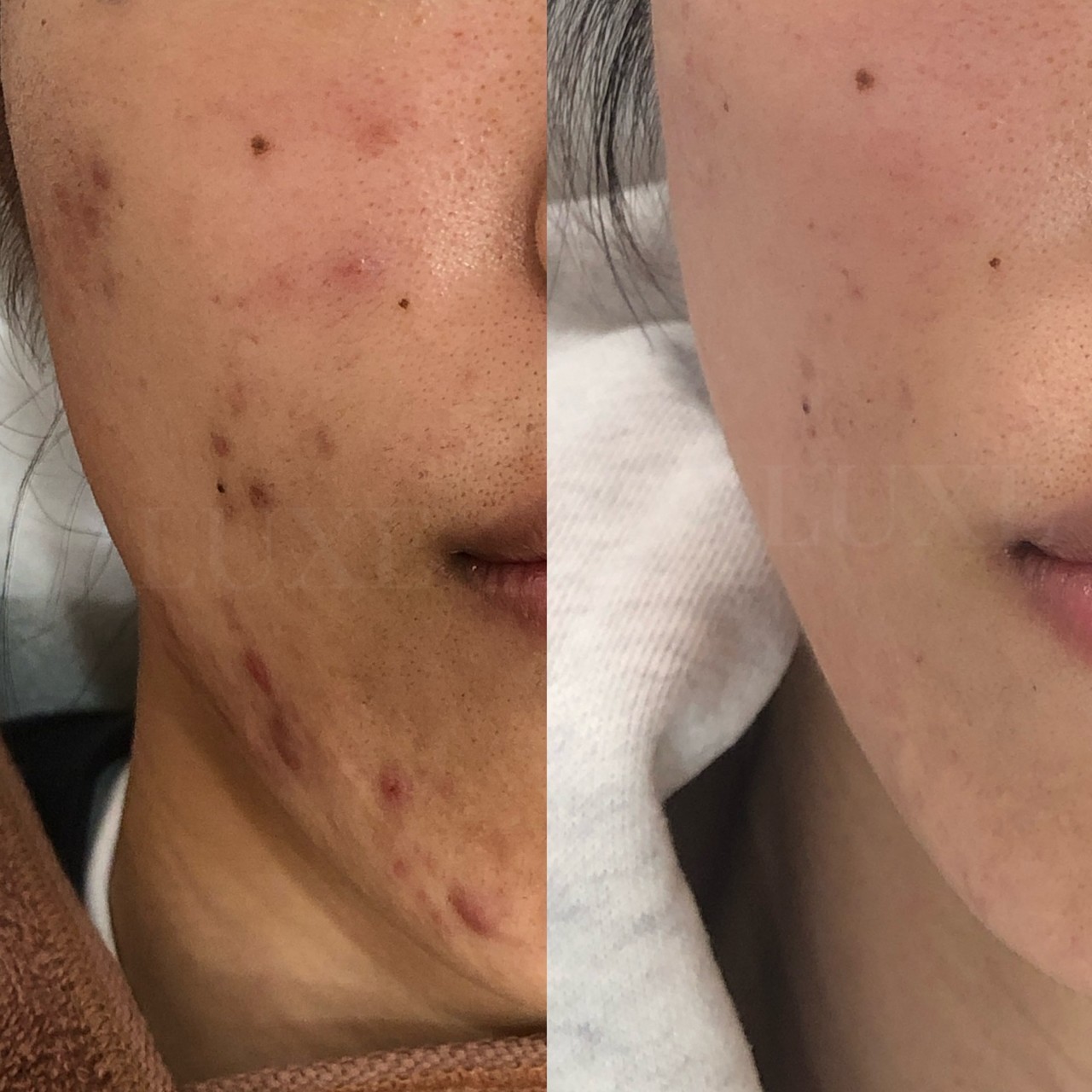ずっと気になっていたこめかみのニキビ跡の炎症が酷く、黒っぽく色素沈着していたのが3週間に一度のサロンケアでニキビ殺菌で段々と色素沈着なくなってきました。お客様もスキンケアをするのが楽しく、お陰様でニキビに悩まなくなりましたとおっしゃってました!お客様に笑顔が(*^^*)素晴らしい!