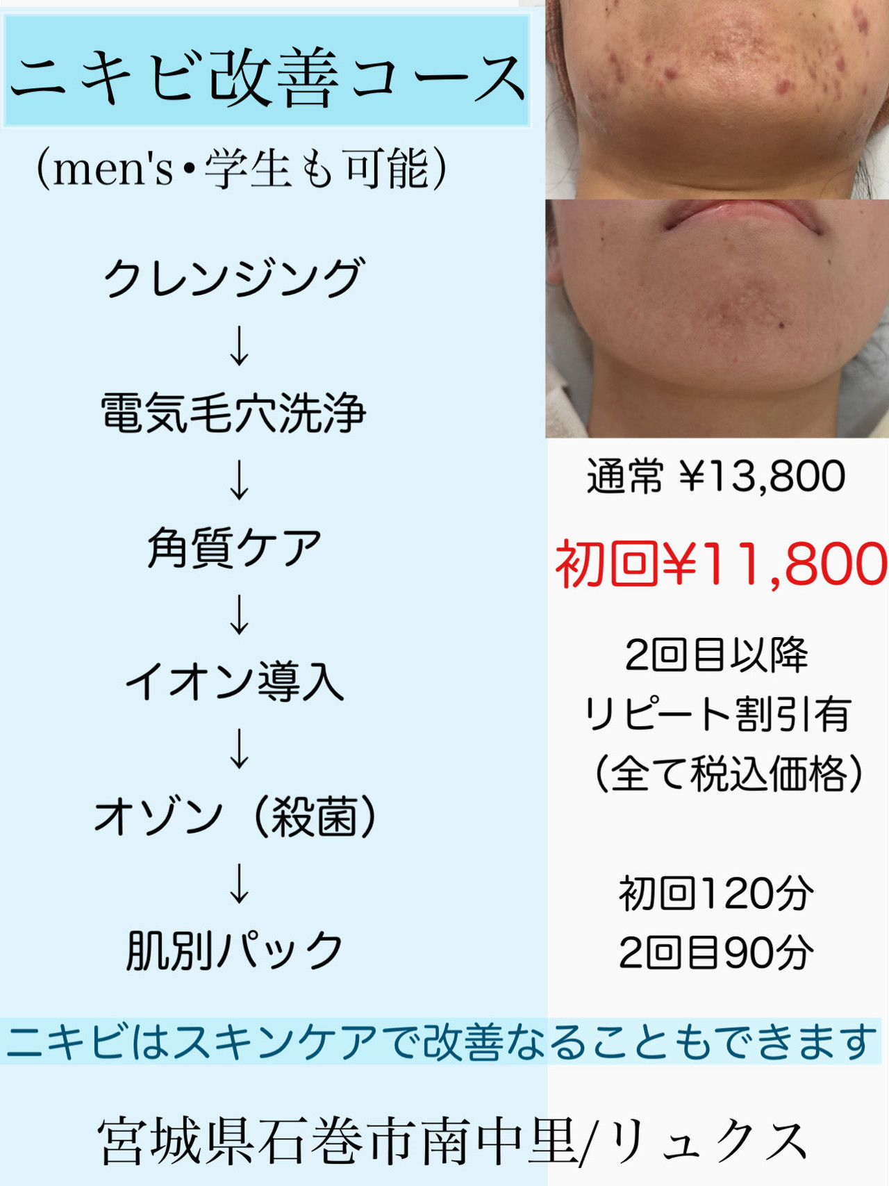 ニキビ・ニキビ跡・思春期ニキビ・肌トラブルは一人で悩まずに当店にお任せください。