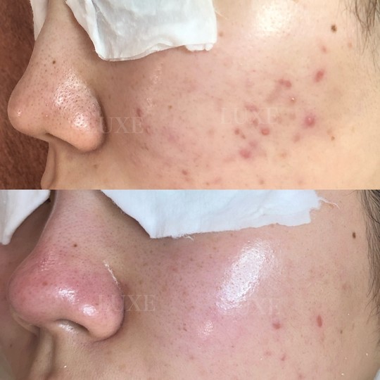 ずっと気になっていたこめかみのニキビ跡の炎症が酷く、黒っぽく色素沈着していたのが3週間に一度のサロンケアでニキビ殺菌で段々と色素沈着なくなってきました。お客様もスキンケアをするのが楽しく、お陰様でニキビに悩まなくなりましたとおっしゃってました!お客様に笑顔が(*^^*)素晴らしい!
