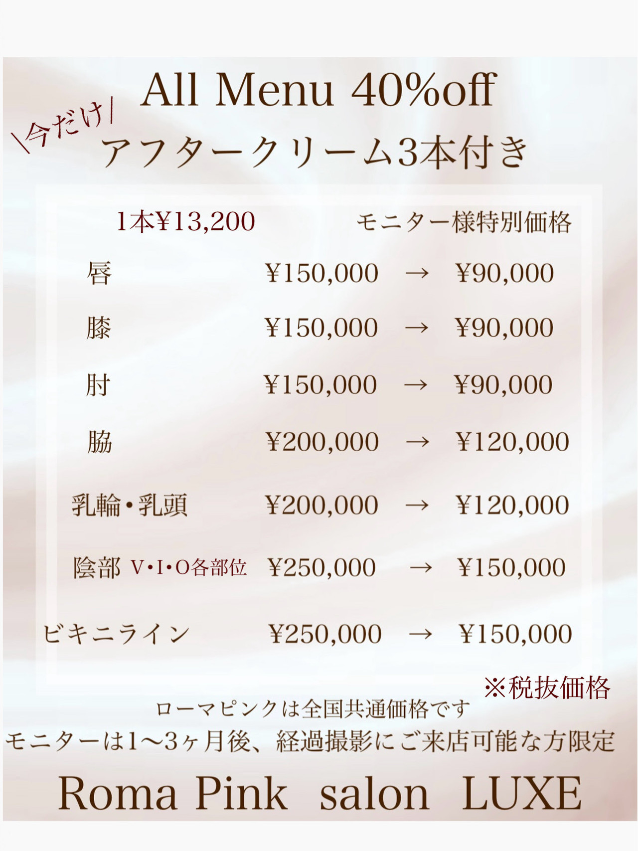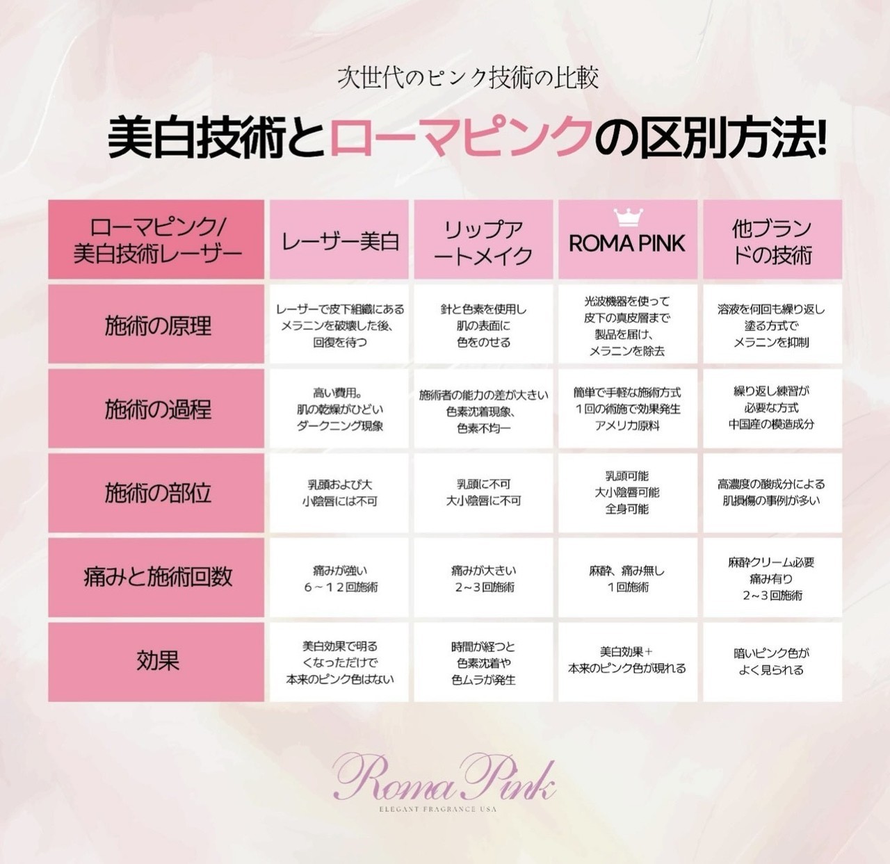 LUXEはメラニンケアNo.1のローマピンクの正式なサロンですので安心して下さい。