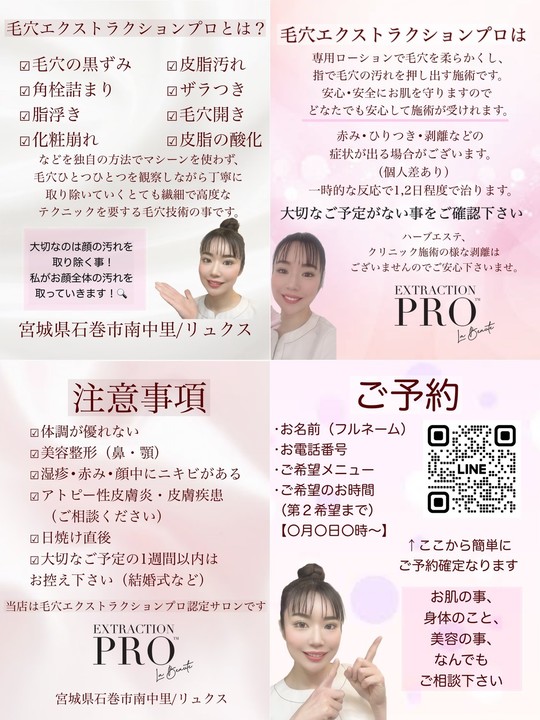 毛穴ケアのプロフェッショナルとして、お客様のあらゆる毛穴の悩みと向き合い施術+アドバイスさせて頂きますので、ぜひお任せください(*^^*)
